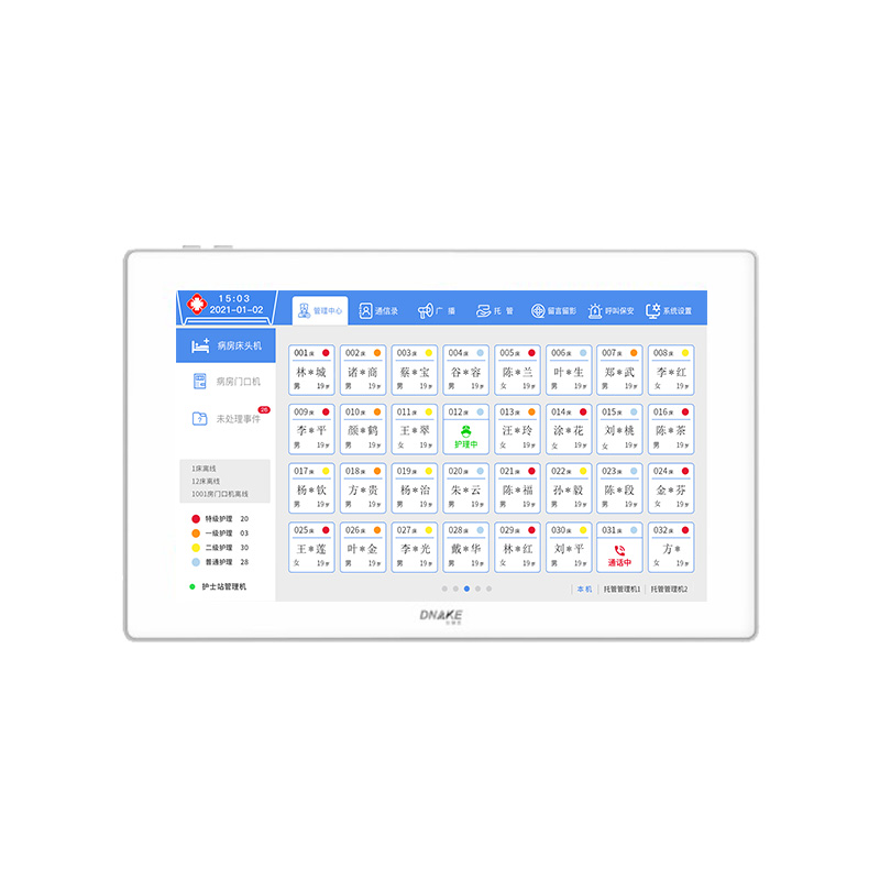 設(shè)置在護(hù)士站或者醫(yī)生辦公室,作為小型護(hù)士站,方便辦公室內(nèi)的醫(yī)生也可以及時(shí)得知患者情況,及時(shí)響應(yīng)患者需求,并做好醫(yī)護(hù)信息管理。