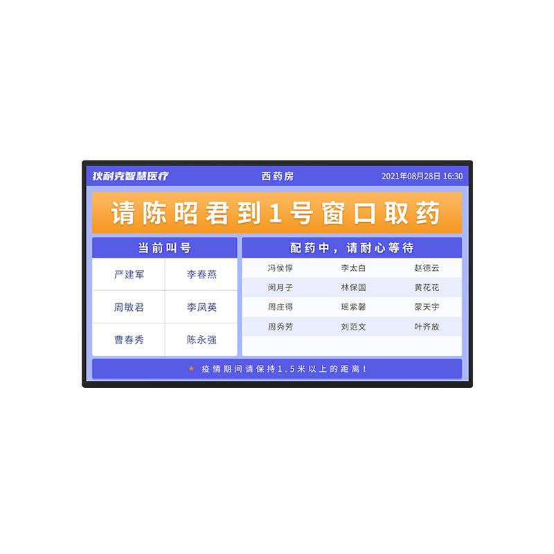 1)等候區(qū)域部署液晶顯示大屏,用于顯示排號信息、狀態(tài)以及提示信息