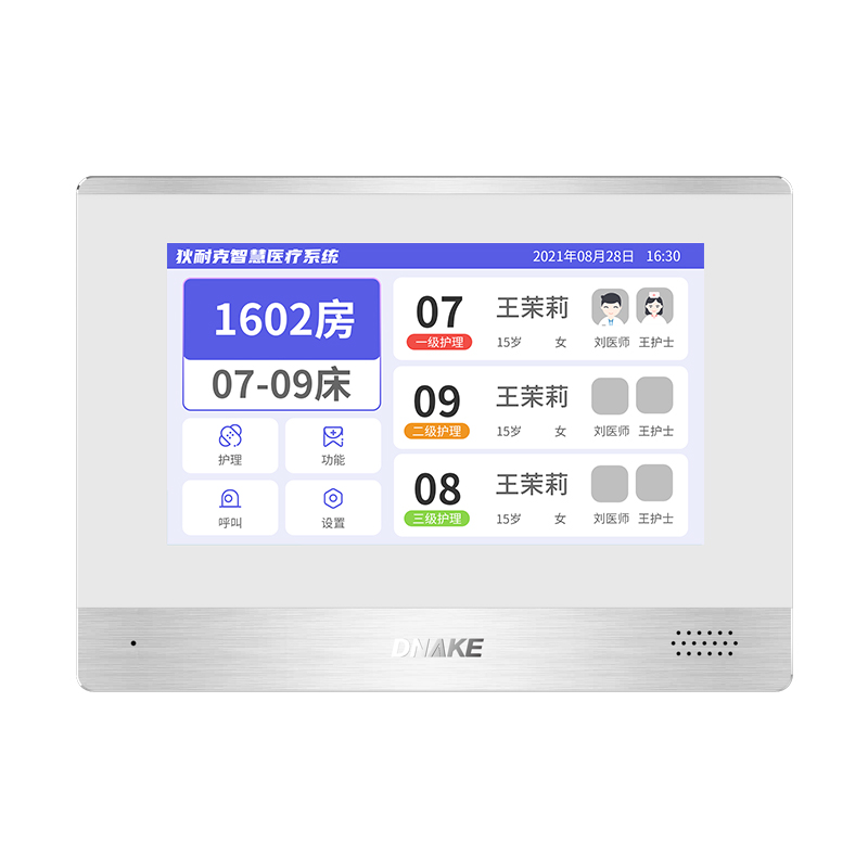 設(shè)置在病房門口的終端設(shè)備,主要用于顯示病房相關(guān)信息,內(nèi)置簡易醫(yī)護(hù)工作站,支持病房床位一覽、患者動態(tài)跟蹤、呼叫對講、增援求救等多種呼叫類型,信息齊全,及時響應(yīng)醫(yī)護(hù)需求,實現(xiàn)智能化醫(yī)護(hù)管理。
